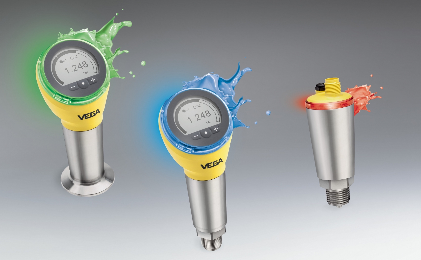 Velký displej přístroje VEGABAR 38 a 39 nabízí velmi dobrou čitelnost i za denního světla. Inovativní barevný prstenec poskytuje optimální informaci o spínacím stavu ve všech směrech (360°). Tímto lze všechny stavy spínačů a stav procesu rychle rozpoznat ze kterékoliv strany vašeho provozu i na delší vzdálenosti. Navíc si uživatel může zvolit libovolné barvy tak, aby odpovídaly aplikaci a prostředí. Celkem je k dispozici až 256 barev!